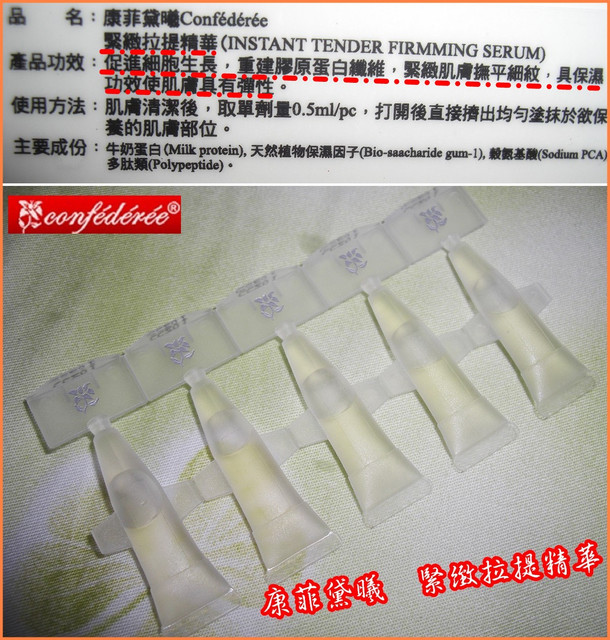 試用品是緊緻拉提精華、傳明酸喚白美晳霜及無瑕細緻隔離乳