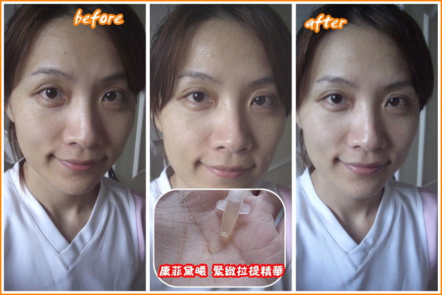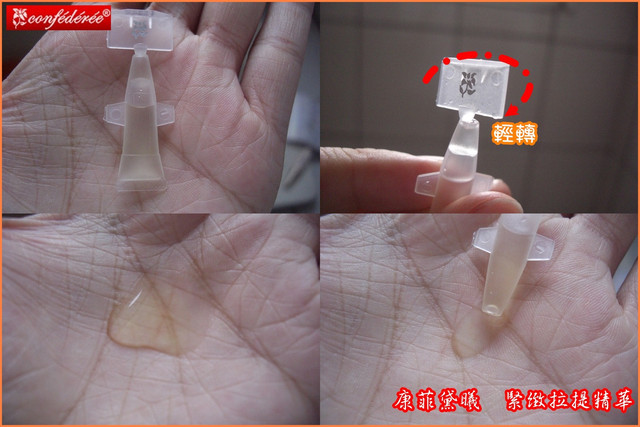 洗完臉後,君君直接轉開擠出緊緻拉提精華,