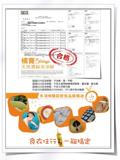 橘寶天然濃縮洗淨劑還通過SGS檢驗認證合格,