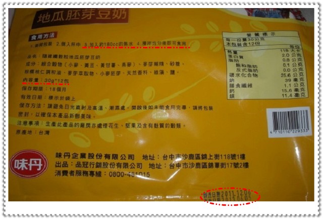 有著與外袋一模一樣的完整產品說明及有效日期。
