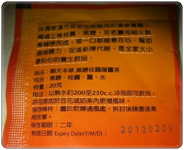 剛好手邊有順天本草的黑糖桂圓暖薑茶,