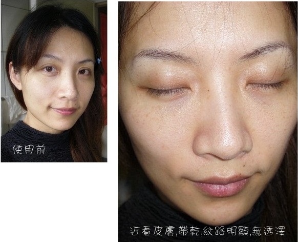 使用前,遠看膚況似乎還可以,但卻沒有保水度的光澤感,