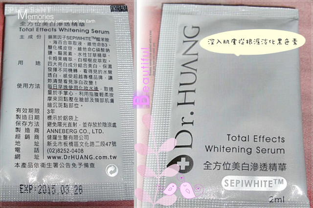 Dr. HUANG 全方位美白滲透精華:http://www.edrhuang.com.tw/prddetail.php?i_item=D01812025&g=0&s=fast1&d=1