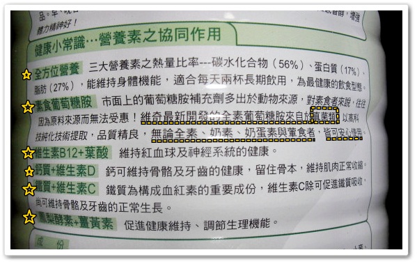 ■適用對象:全素及奶素者、喝奶不適者、中老年人以及其他需要補充葡萄糖胺者。