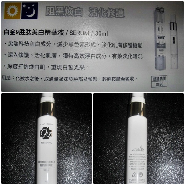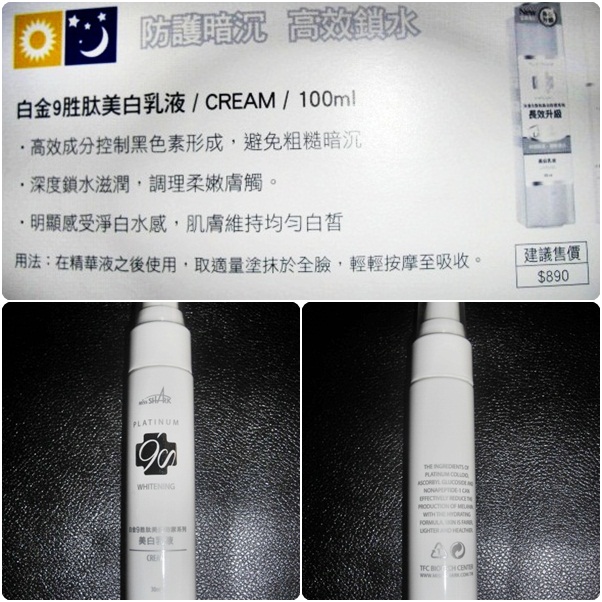 高科技美白雙重防護因子:微粒白金、九胜肽,