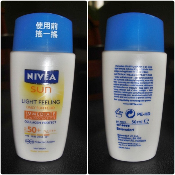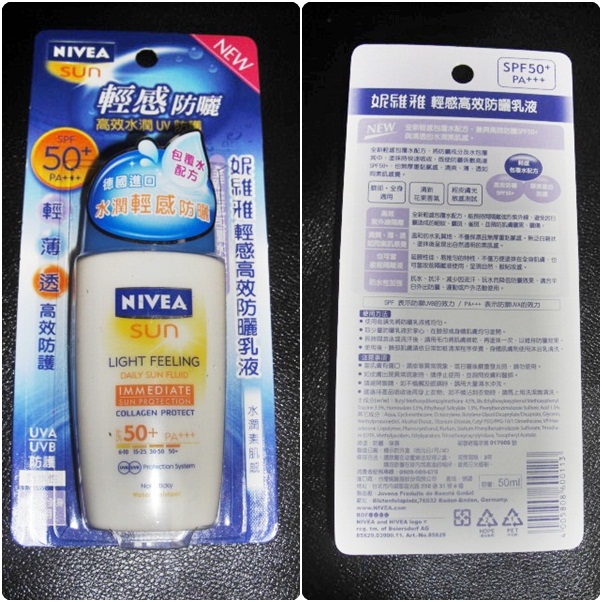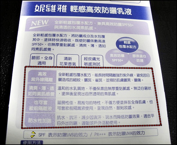 這次要用的是妮維雅輕感高效防曬乳液SPF50PA++ ,