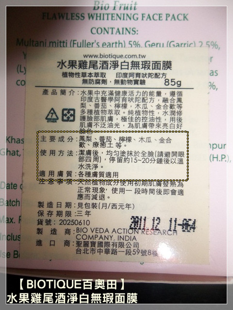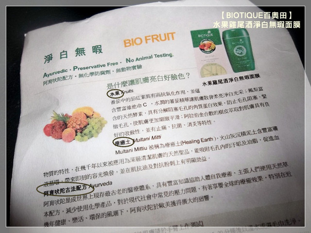 BIOTIQUE百奧田/水果雞尾酒淨白無瑕面膜,遵循瑜珈系阿育吠陀5000年傳統配方,