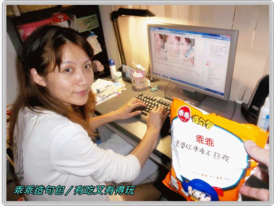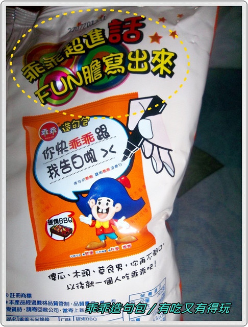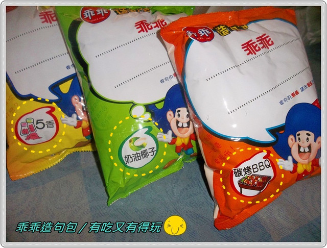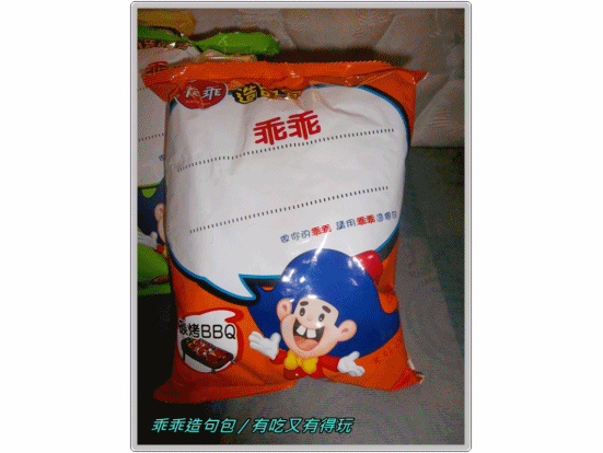 乖乖造句包,有吃又有得玩,外包裝的空白處,就像留言板一樣,隨時能寫下你的心情,管你是傻瓜、木頭、草食男....