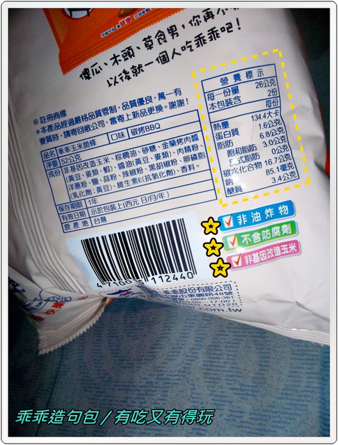 現在的乖乖,除了原本的5香及奶油椰子口味,還多了碳烤BBQ的口味;這BBQ坦白說,我第一次嚐鮮,
