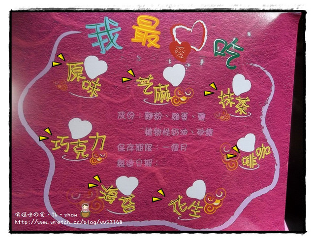 目前有7種口味(原味、芝麻、海苔、咖啡、巧克力、抺茶、花生),任君選擇!