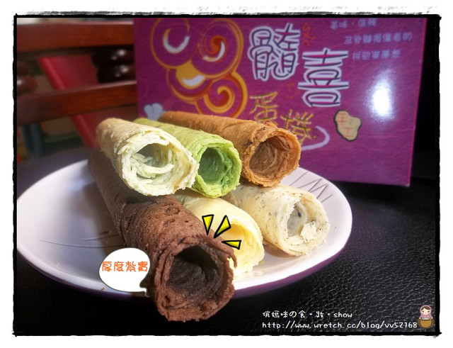 值得一提的是~"髓喜烘焙坊"的蛋捲密度較實,厚度也較厚,所以也比較不容易掉屑。