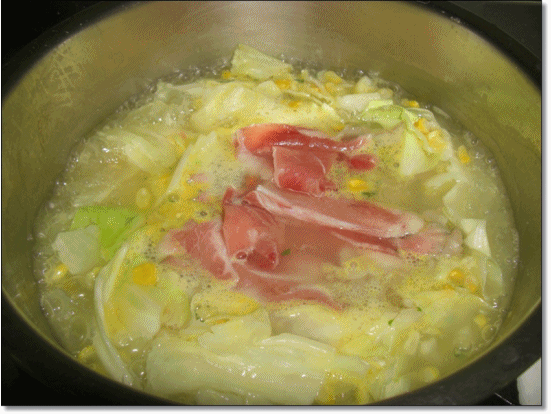 接著放入康寶濃湯一包,在多加些青菜及肉片,灑個蛋花~